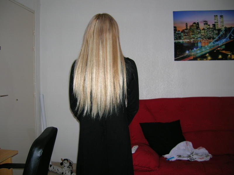 corinne porte un kit 20 " (55 cm )lisse de coloris 27/613 (blond doré et blond platine )