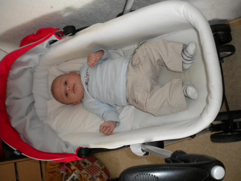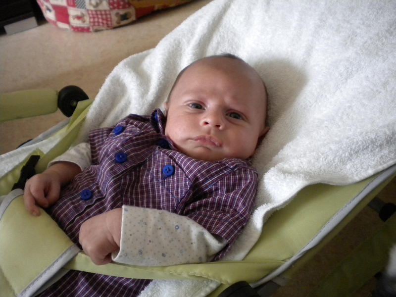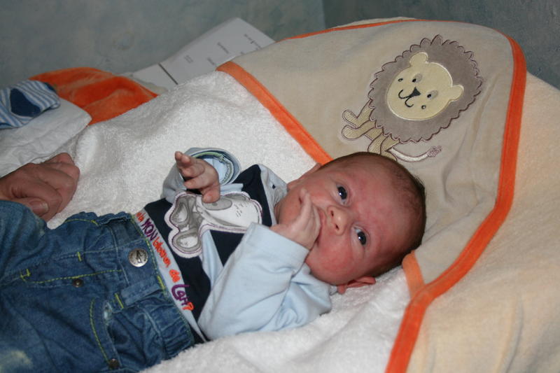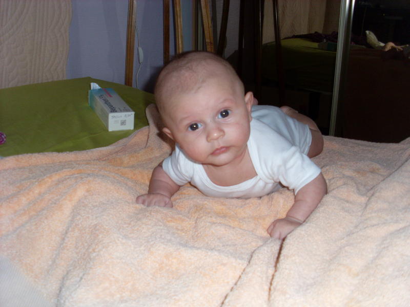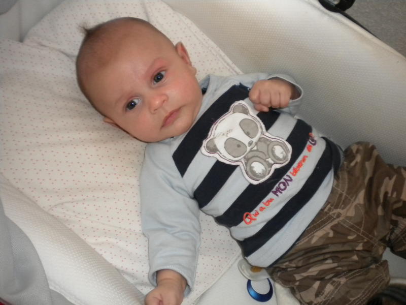 aujourd'hui un peu grognon, mais quand meme beaucoup de sourire, il a 4 bib de 210ml de guigoz confort, qui lui donne la diarrhé donc demain pediatre pour changer