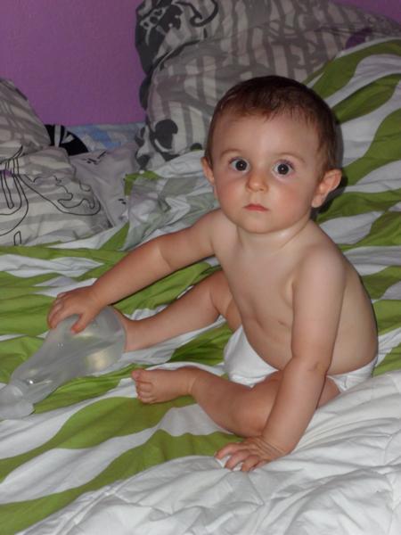 sinon il ne fini plus ses bibs le soir je mets son lait avec des cereales eux legumes, je pense passer a la soupe, mais pas facile, bon il pigne je vous laisse, je croit ya la "crotte" héhéhéhé bisesxxxx