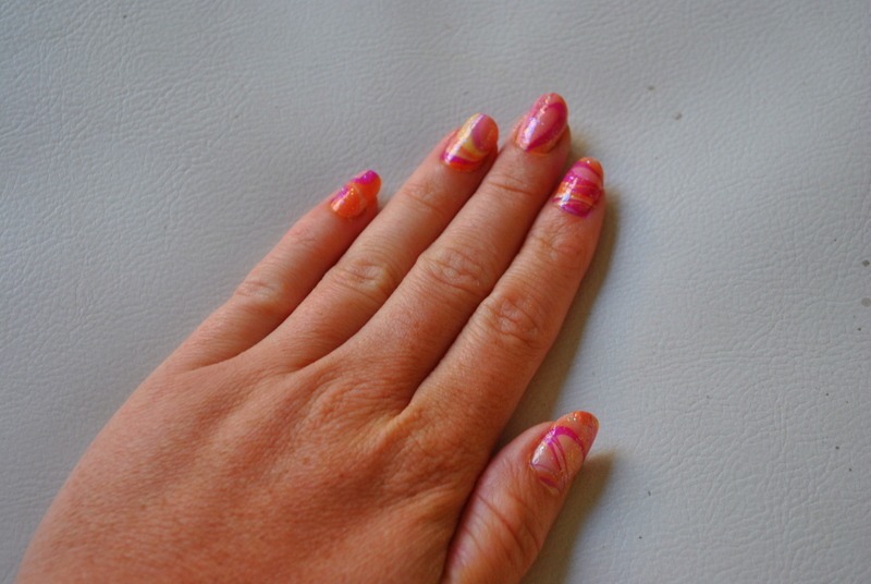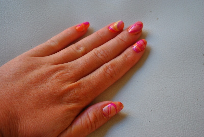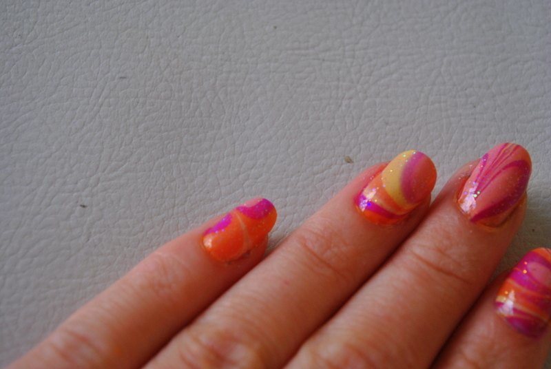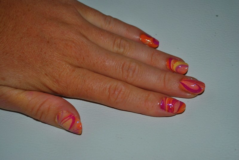 bonsoir enfin mon premier water marble!!!galere la main gauche quand la droite n est pas tout à fait sèche!!!mais contente de l avoir fait!!!! bonne soirée julie!!!!;)