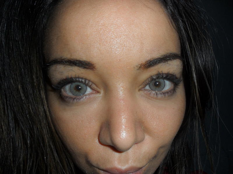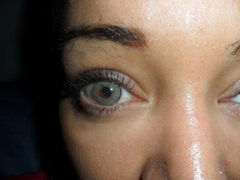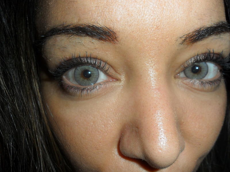 Elle est incolore, sauf pour un cercle d'iris très sombre et assez épais, qui met en valeur la couleur naturelle de l'œil, et surtout des yeux clairs. Elle a un effet ultra brillant (gloss). Ça peut être intéressant pour les iris de petite taille. Je vais essayer d'en avoir !