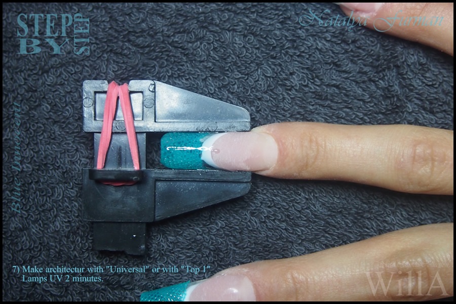 5) Mettre le Gel de Construction "Builder French" pret de votre sourire comme sur la photo. UV lampes 3/4 minutes