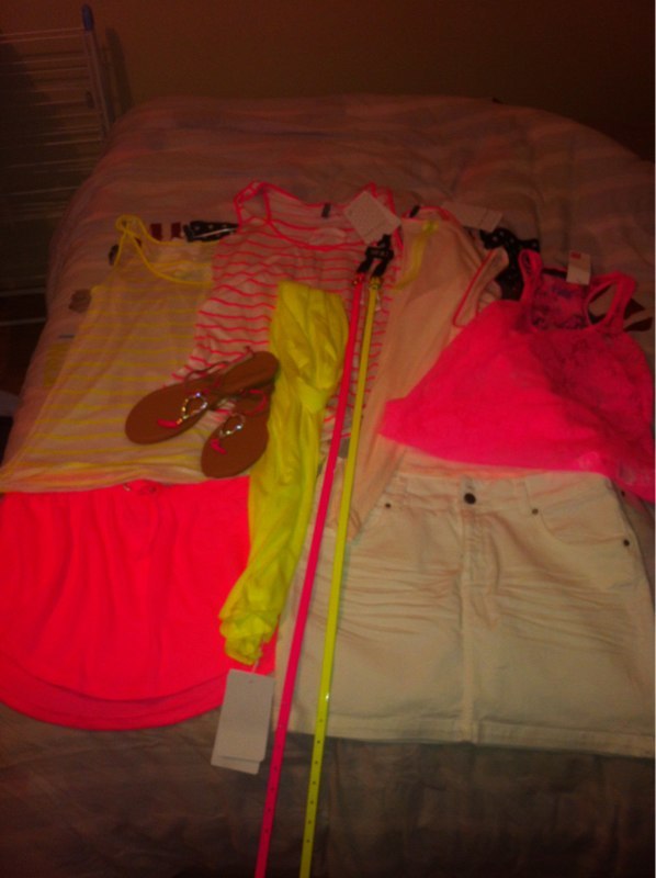 4 hauts 2 jupettes les ceinture un foulard et une paire de pompes