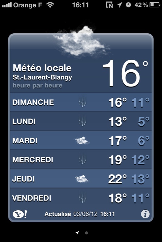 Voila ce que dit mon iphone et voila une photo du temps quil fait