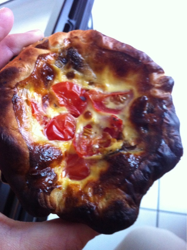 Bah cetait ce qui me restait dans le frigo :) je met ma pate feuilleté, du concentré de tomate au fond, jai coupé les champignons frais en fines lamelles, puis dessus des tomates fraiches et jai mis par dessus 2 oeufs que jai battus avec 20cl de creme fraiche et un peu de lait. Comme une quiche.