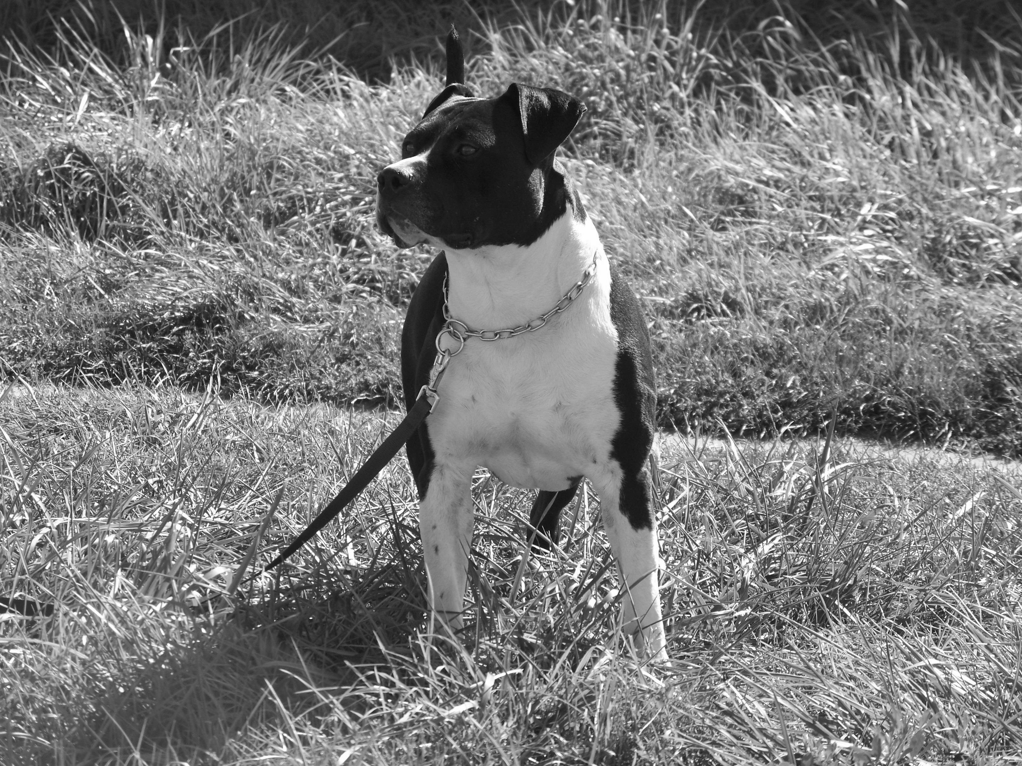 Cc j'ai moi aussi un staff agé maintenant de 5ans il est noir et blanc et s'appel caïzer, un gros nounours plein d'affection :) adorable avec mon ptit bout de 2ans mais un peu jalou car jusqu'a il y a 2ans il avait l'exclusivité c'etais mon bébé encore maintenant bien sur mais bon y'a mon fils qui passe avant normal lol.