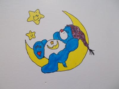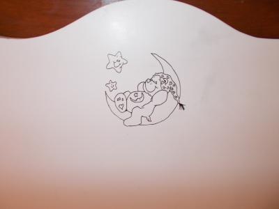 J'ai déja fait un dessin sur la tête de lit de bébé, un lustre, et des pompon pour en faire un mobile, je vais également faire un capteur de rêve et faut que je continue ma boite à papa