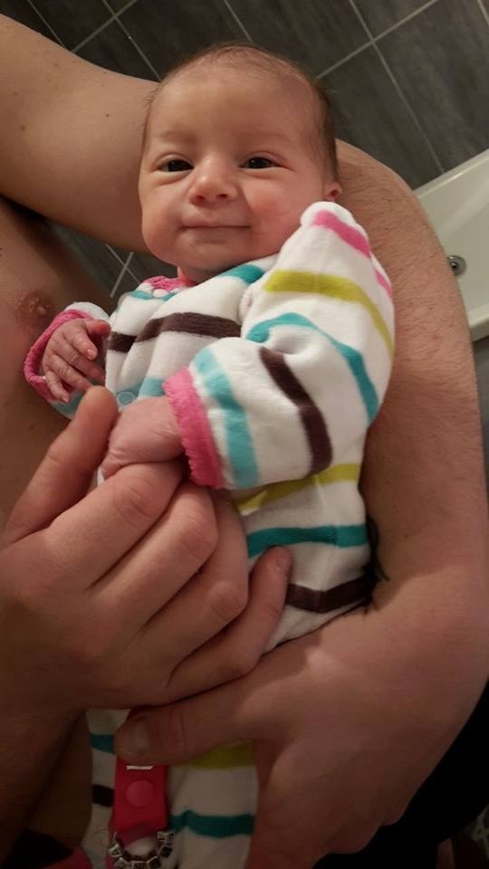 Arrivée la bas monito tout vas bien, contraction tout les 2 minutes que je gère pas mal et du coup ouverte a 3! Donc elle me dit on vous garde, allez marchée et revenez quand c'est plus supportable! Donc je part, je marche je marche.. Je reviens la voir a 15h elle vérifie et me dit que je suis ouverte a 4 donc elle me met en salle de travail, je prend un bain chaud, 15h30 ouverte a 4.5, chéri toujours pas la... mais elle me dit que de toute façon c'est pour ce soir un 1er c'est toujours long etc... Je fait du ballon, je me repose... La sage femme revient a 18h je suis ouverte a 5 et chéri arrive!!! Donc on attend il me demande si je veux la péri je dit que j'aimerais faire sans, au pire je vais essayée d'aller le plus loin possible sans j'aviserais après car j'arrivais parfaitement a l'est gérée... 19h30 ouverte a 6 je descend en salle d'accouchement etc... mon col a stagnée jusqu'à 22h30 a 6, il reviens a 23h et me dit ah vous êtes ouverte a 8!!!! Contraction qui sont de plus en plus longue je commence a avoir du mal a gérée .. J'attend et au final faible que je suis je demande la péri lol. Poche des eaux toujours intacte, il me dise que bon de toute façon il vont la percer pour accélérée les choses et que a partir du moment ou il perce la poche les contractions vont faire de plus en plus mal. Donc pose de la péri a 8 (Je suis quand même fier de moi :p) il perce la poche et la en moins d'1h je suis a dilatation complète!! Je me repose un peu le temps que bébé descende.. Vers 1h elle est bien engagée etc.. mais il attende un peu car elle est dans la partie moyenne et faut qu'elle descende encore un peu!