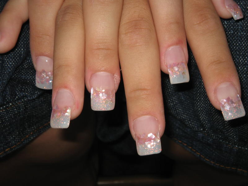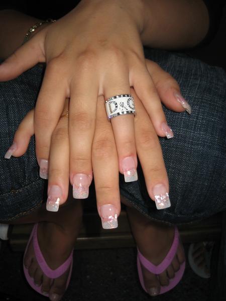 et voilà tout est dans le titre quand ma cliente (modèle) a vue ma pose "bleu océan" elle m'a dit "je veux la meme chose mai en blanc et rose!!!!!!!" mdr:drow: donc voilà pose avec résine blanche pailletée nfu oh, nacres crakeou et construction au gel...