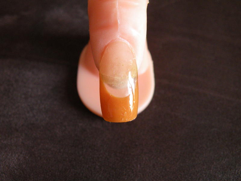 je vous mets la pose chablon que j'ai faites samedi(pose d'une semaines la photos est pas nette) mais je voix decollement et elle a perdu de la brillance et elle a une belle repousse!!!