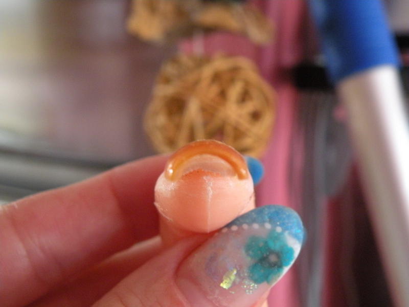 bon dessous ça fait un peu bizarre peut etre le pinceau mal rincé et en plus la colle car il est tombé au limage donc collé il est un peu mieux que l'autre