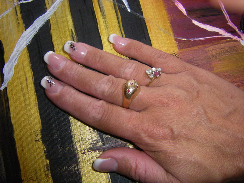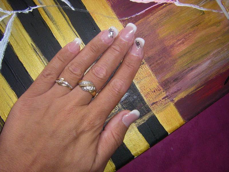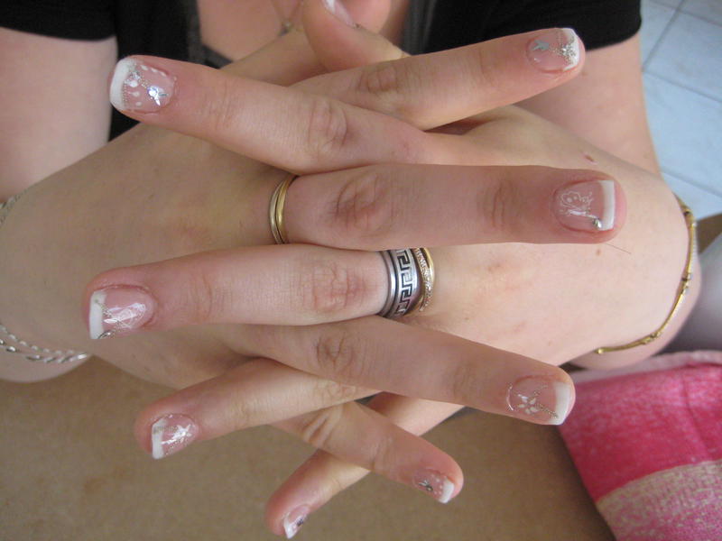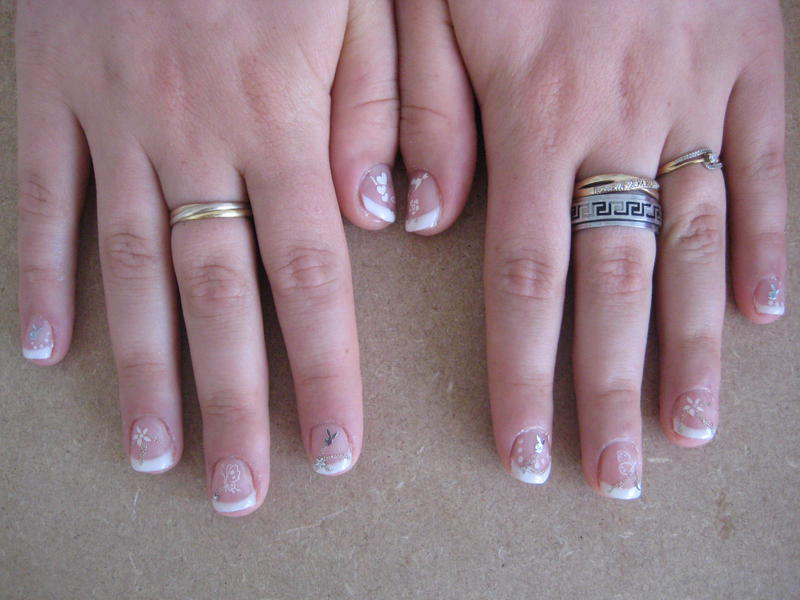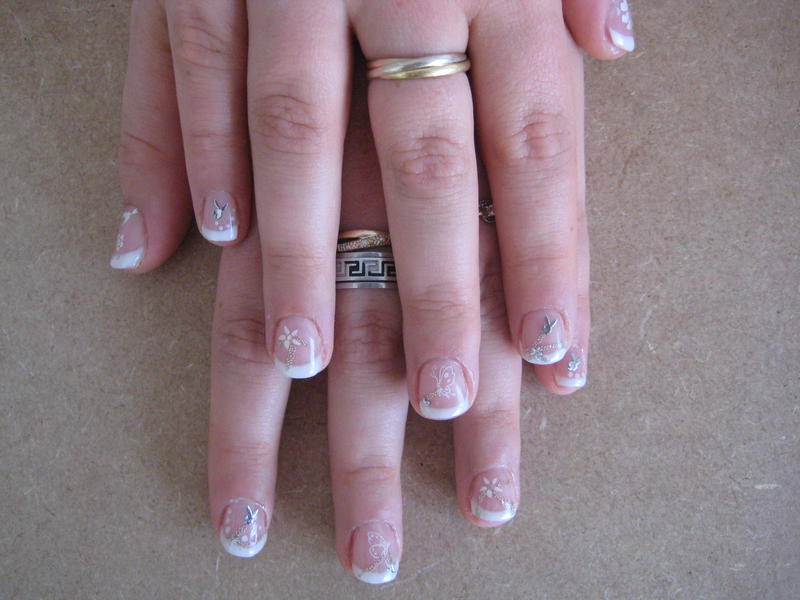 J'ai utilisé les stickers de Karine. Par contre les papillons je me demande si ce n'est pas en decalco à voir....car impossible de les coller sur l'ongle.