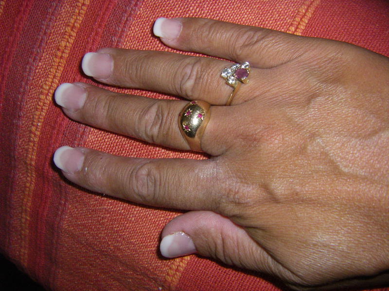 par contre sur le coté légèrement au dessus du bord libre ,son ongle forme une petite bosse qu'elle n'avait pas avent.