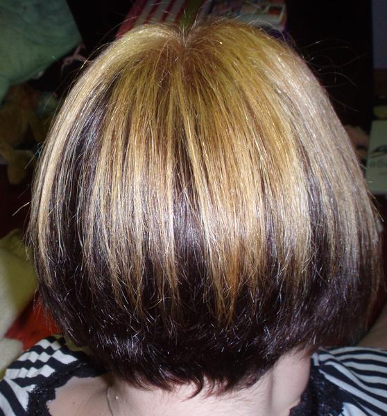 Voila juillet 2008 en cuivré et blond et en brune en septembre 2008 et désolé pas de photo avant et maintenant j'ai encore changé car je trouve que l'on voit trop cette coupe...