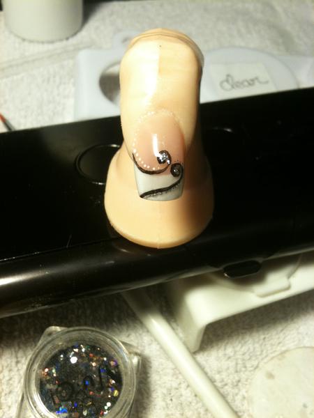 la je suis entrain de finir mon 1er doigt d entrainement, je met mon sealer ( car j ai fait une tite deco ^^ enfin j ai essayé mdrrrr) et je met une tite photo :)