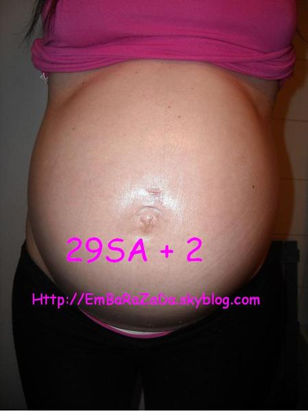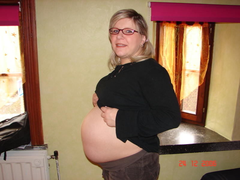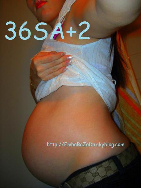 voila le miens la veille de mon accouchement avec césarienne prévue 12 jours a l'avance,elle était en siege et bien décider a y rester elle avais la position d'un fer a cheval et elle pesait 3k290 et 47 cm.