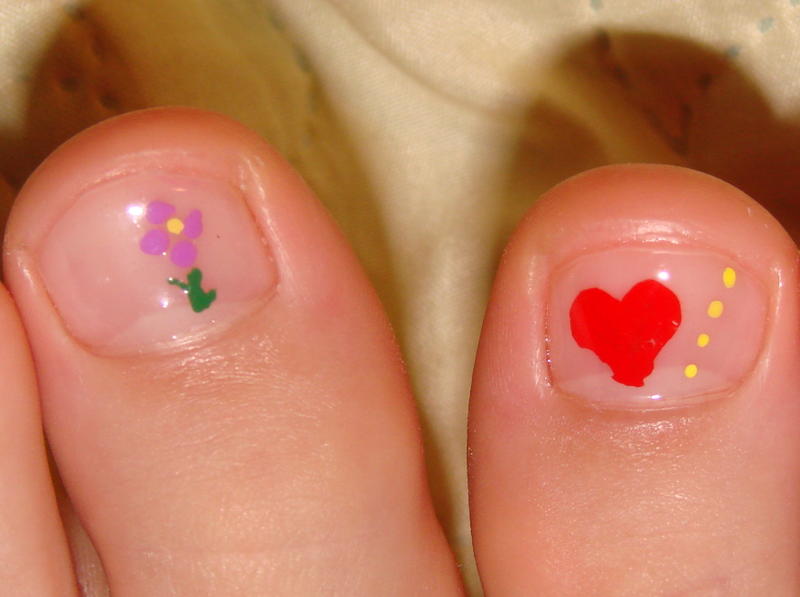 J'ai fait mon premier essai de dessin sur les ongles des pieds de ma fille...