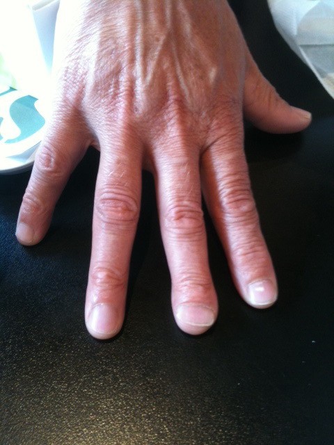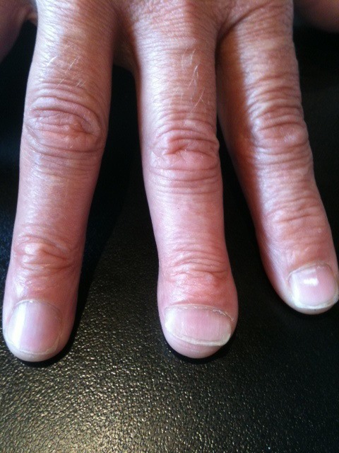 quand elle était petite elle s'est coincée son ongle dans son trotteur apparement comment j'en sais rien mais elle s'est retrouvé avec son doigt comme çà toute sa vie.