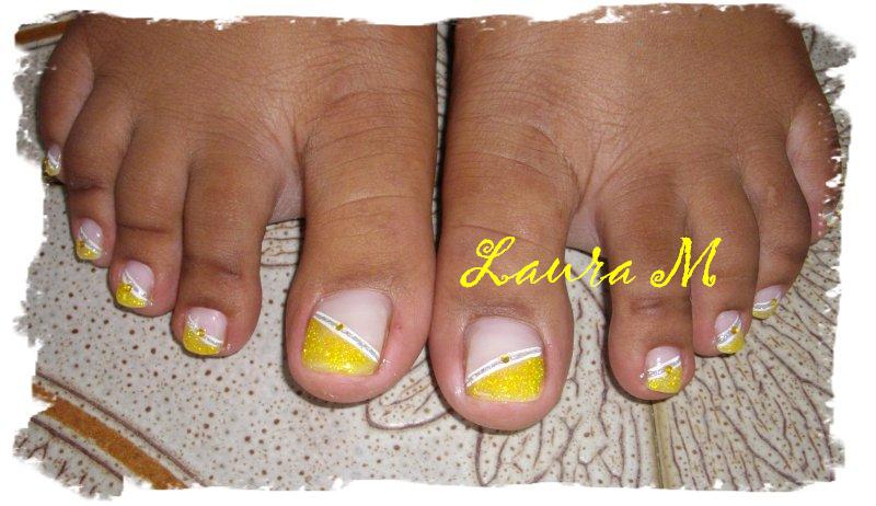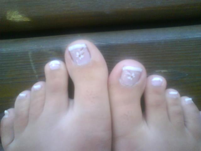 Si je peux vous donner un petit conseil, qui n'est pas méchant en passant et ce n'est que mon avis mais apparemment les ongles de pieds que j'ai pu voir on les ongles court pour une french. Une grosse french épaisse sur ongles courts ne mets pas le pied en valeur et ça fait "pâté" et je trouve que ça se voit qu'on a triché sur la longueur de l'ongle.