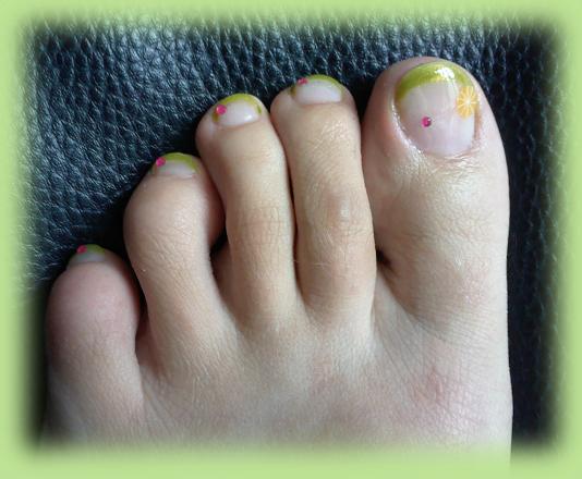Pour les pieds avec une french d'une couleur différente je trouve ça extra les couleurs! ça change de blanc! bravo très bonne idée.