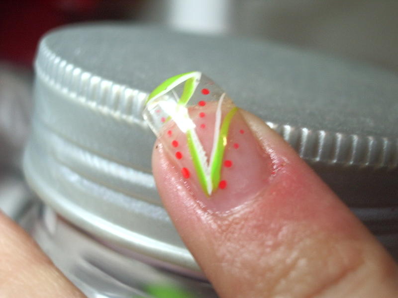 alors voila j ai recu mes liner hot fluo de chez professionnails et j ai fait une tite deco sur mon ti doigt pour esssayer....