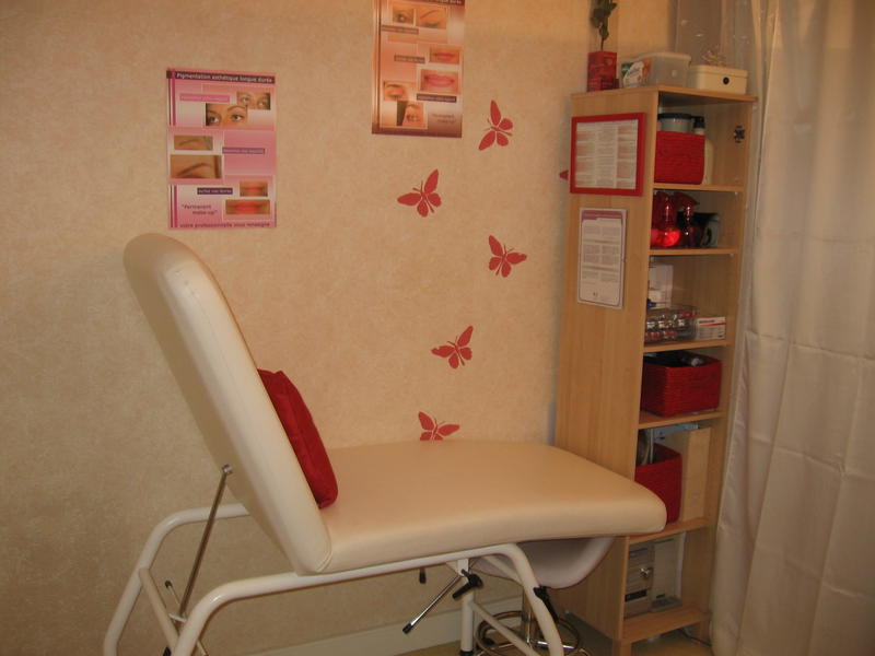 coucou, je trouve celà très joli, assez " frais " avec tes touches de rose rouge et papillons , mais j'ai une question, en france le normes d'hygiène pour un institut est l'obligation d'une douche, tu as pus en installer une dans ta piece?