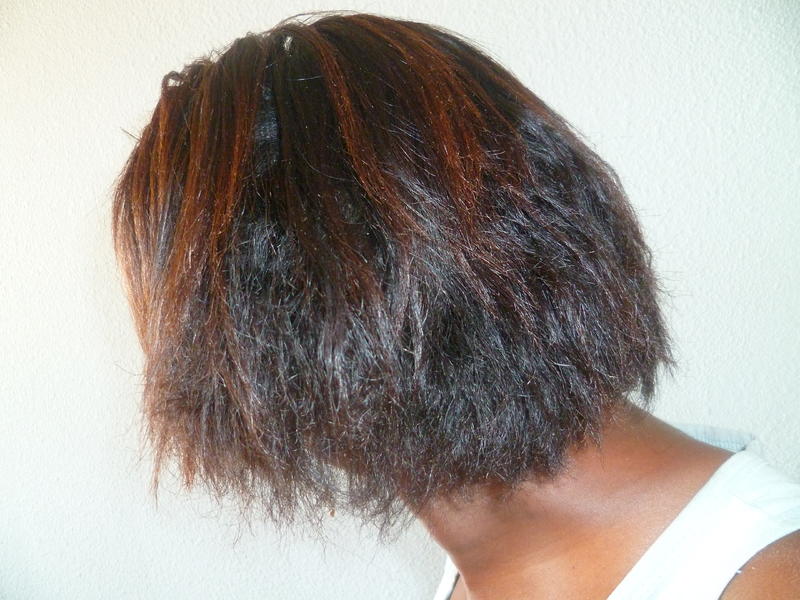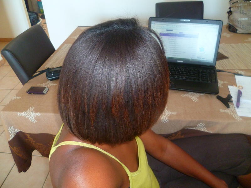 photo 4 et 5 : une semaine après défrisage jour J avant le lissage