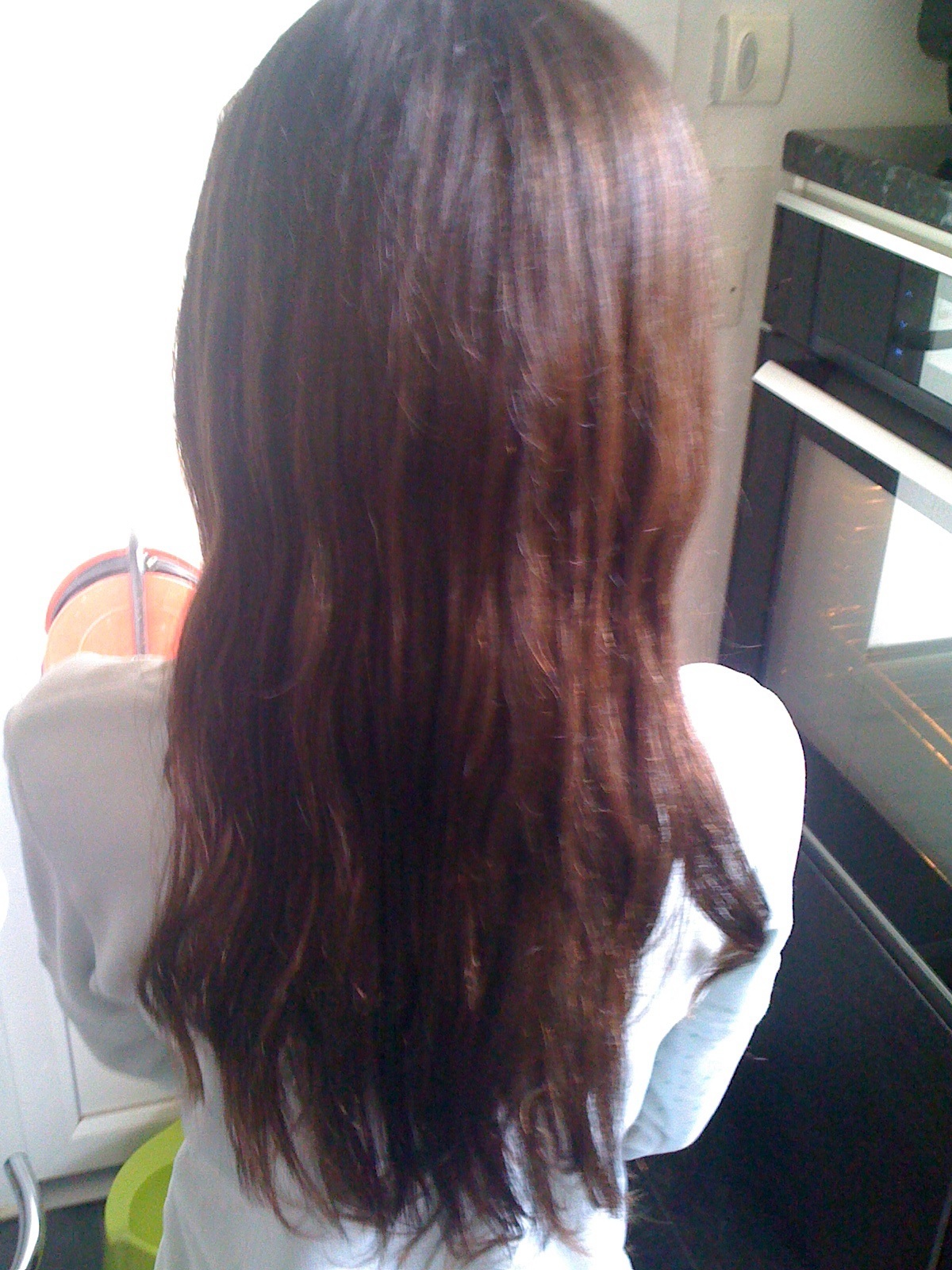Voici les photos les filles, les cheveux étaient encore mouillé j'aime trop le résultat de celui là pas besoin de chaleur sauf si j'ai envie de lui faire des bouclettes mais elle aime comme ça et sa m'arrange c bcp mieux pour elle, c cheveux sont tjr brillant doux et lisse surtout