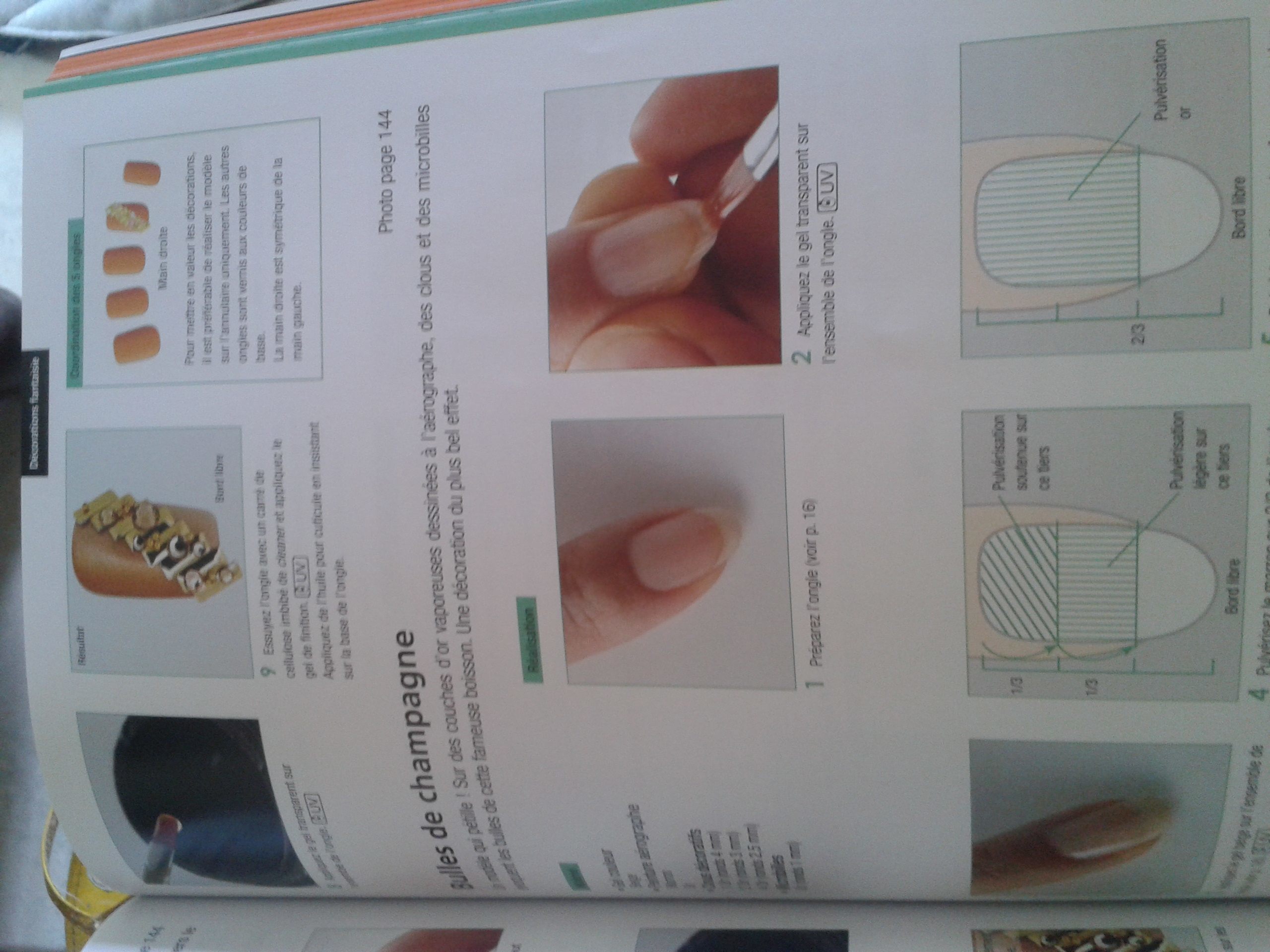 Il est interressant de préciser qu'il y a 5 chapitres dans ce bouqin : la french, les strass Swarovski, l'aérographe et les décorations fantaisies (paillettes, clous décoratifs, hologrammes...).