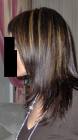 ben j'aurais bien aimé vous mettre une photo, mais mon phone ne fait pas appareil photo et je n'ai pas d'appareil numérique pour le moment! ceci dit, je suis ronde, et mes cheveux sont à 15 cm sous les épaules, châtain clair doré (une teinture 5.3). voilà!