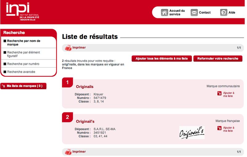 Je voulez savoir si cela été valable malgré la difference d'orthographe, Elle : Origi'nails