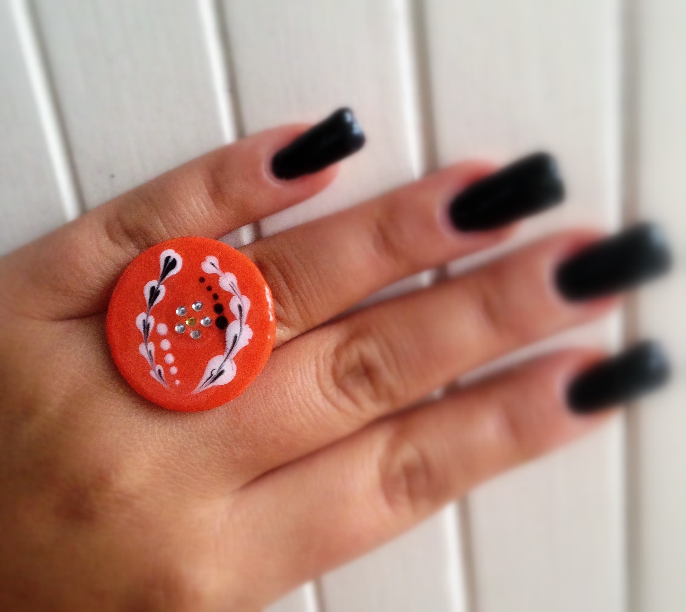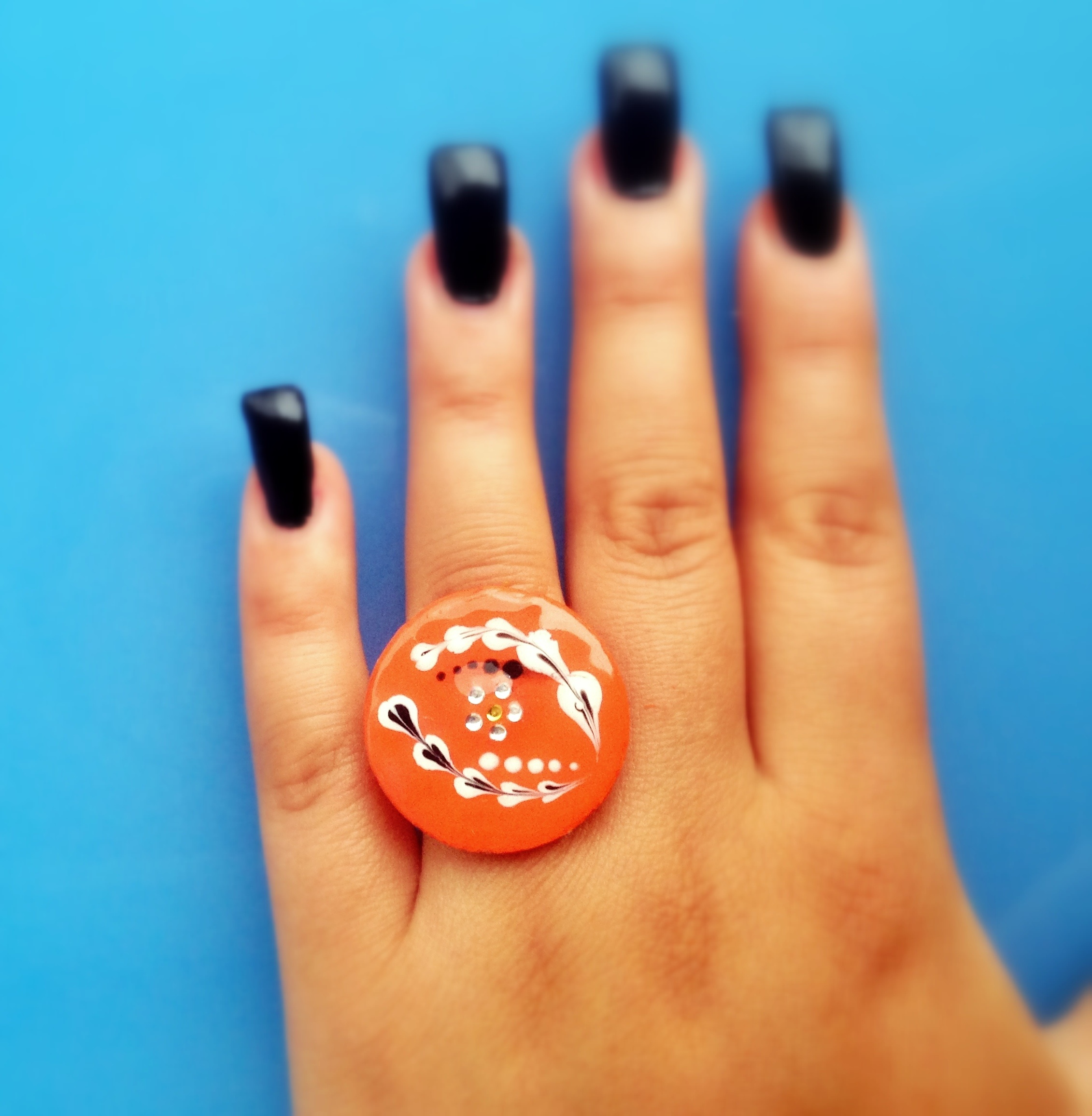 Je l'aime moins que la rouge... Mais parce que j'ai utilisé ma peinture acrylique pebeo comme base orangée, donc c'est la merde !!!!