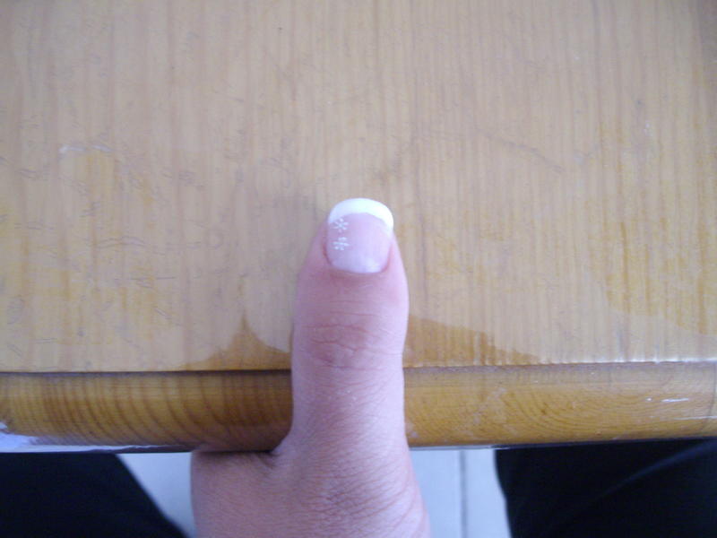 Y a des progrès pour la french, ainsi que pour coller les stickers (bombées en dessous), et je vous ai mis aussi la cata de la capsule sur mon pouce car j'y arrive pas du tout!!!