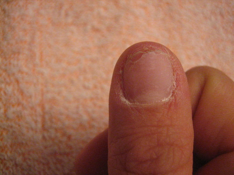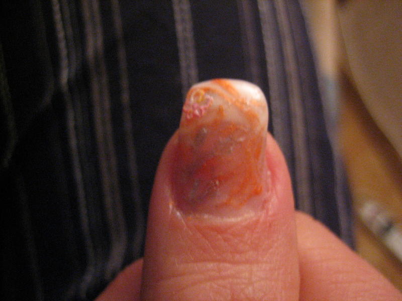 voici mon 1er essai châblons sur mon pouce droit qui était rongé.
