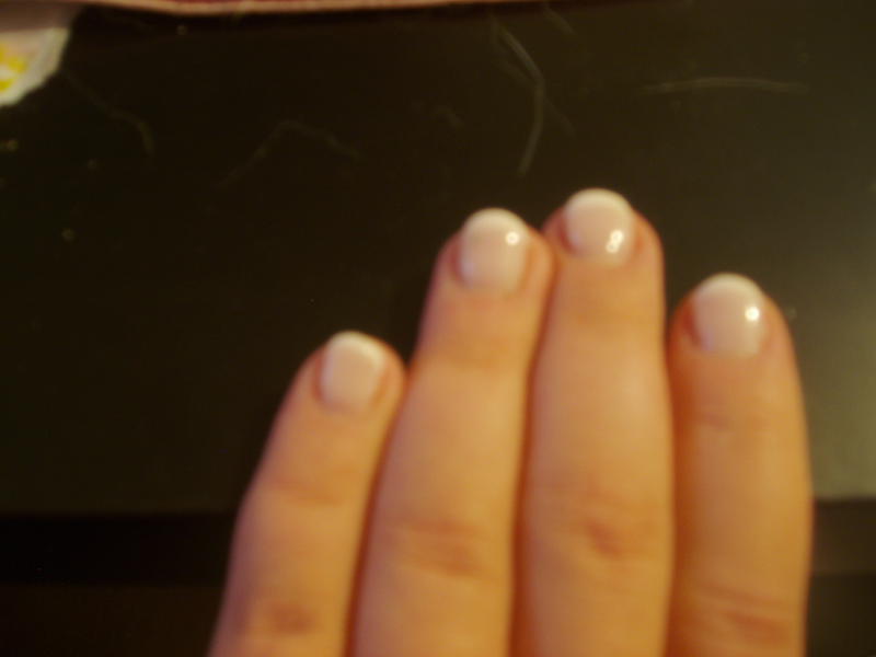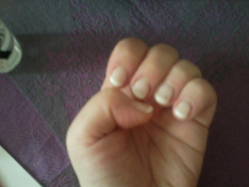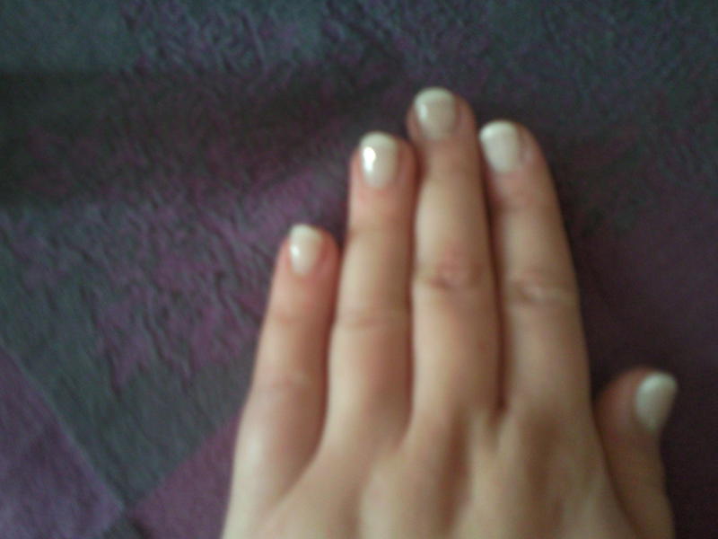 si je dois faire mon auto critique, je dirai que j'ai totalement foiré ma main droite (oui je suis pas gauchère), ma french est pas topissime du tout... j'ai essayé de ne pas touché au cuticules mais pas facile sur le main droite !