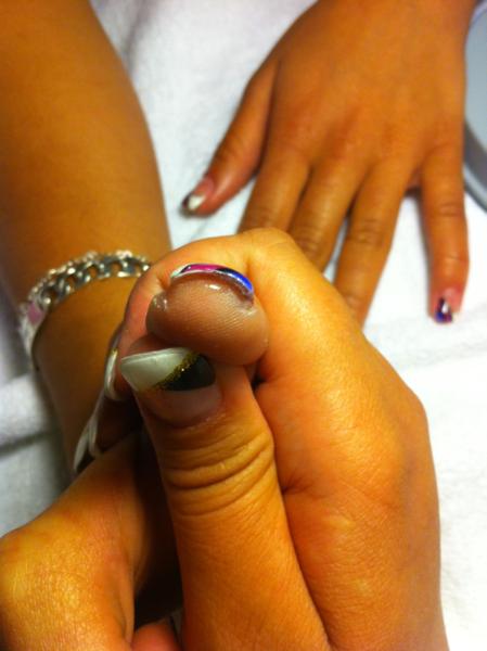 Coucou voilà j'ai fait la 2 eme pose main sur ma sœur tout les doigt au chablon j'ai mis lonnntennn LOL dite moi ske vous en pensez et les chose a améliorer merciiii