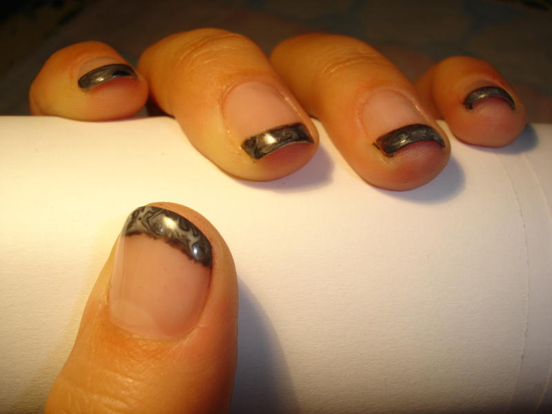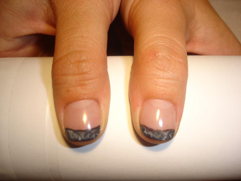 Voici ma 3ème pose : french noire avec effet marbré (du moins j'ai essayé :)) merci de m'apporter vos commentaires, sachant que je n'ai aucune formation et que j'apprends en tant que loisirs.