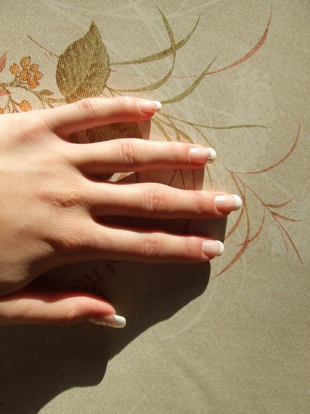 5ème pose ? ben bravo alors... allez je vais faire ma chieuse justesur le profil du pouce on sent qu'il manque un peu de matière sur le bombé ! sinon ta pose est vraiiiiiiment superbe !