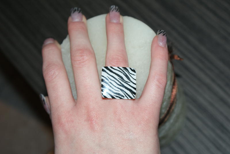 Voici ma bague entièrement faite avec du gel, même l'anneau car je n'avais pas encore reçu mes supports, assortie avec ma pose "zèbre"
