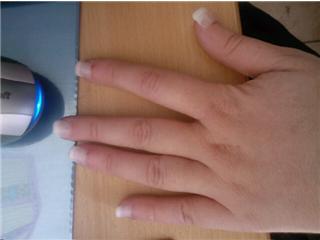 voila ma pose d hier sur une cliente tres complexée par ces main on la comprends , elle est repartie ravie contente tout en sachant que ca risque de pas tenir longempts, donc jai fait avec elle un pacte elle va venir tous les dix jours pour les reparations juska que ces ongles aient suffisament poussée