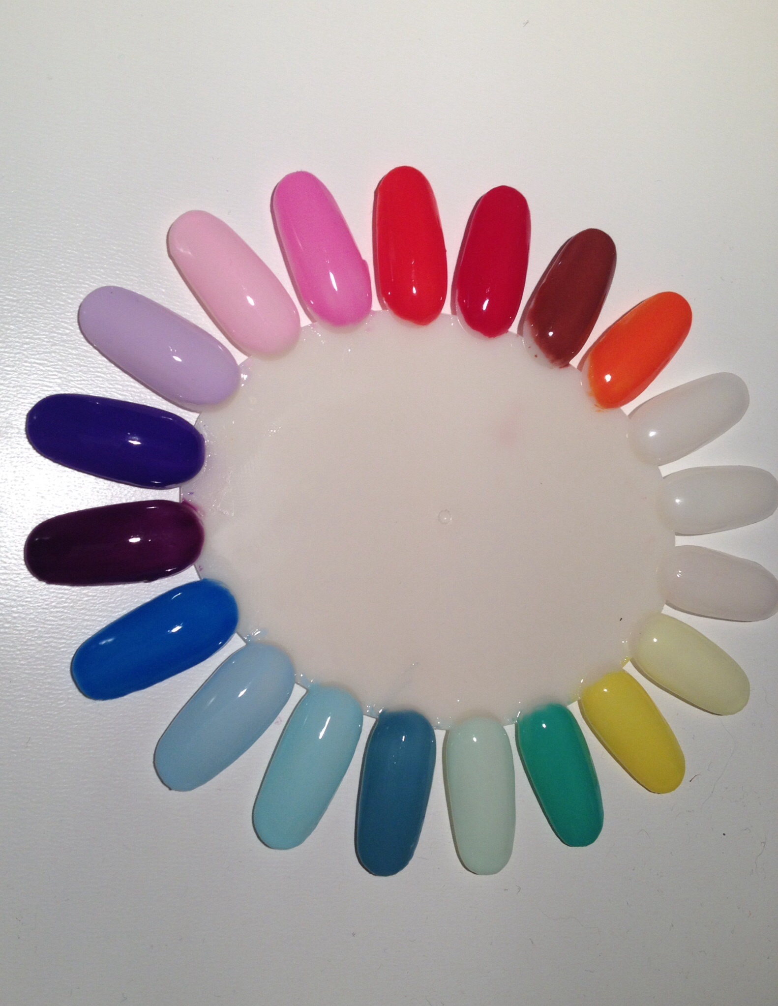 Voici le nuancier :) par contre la photo donne pas tout a fait les mêmes couleurs , elles sont légèrement plus vives en vrai .