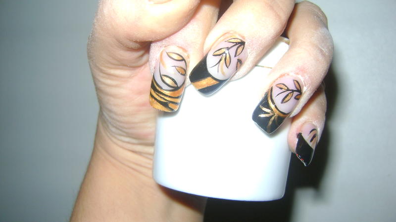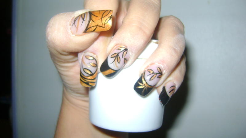 mon humeur changeant assez souvent , voici la deco ( que sur ma main gauche l autre demainsans doute) noir et or sur moi meme