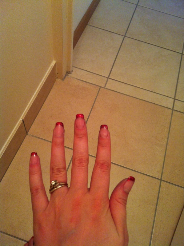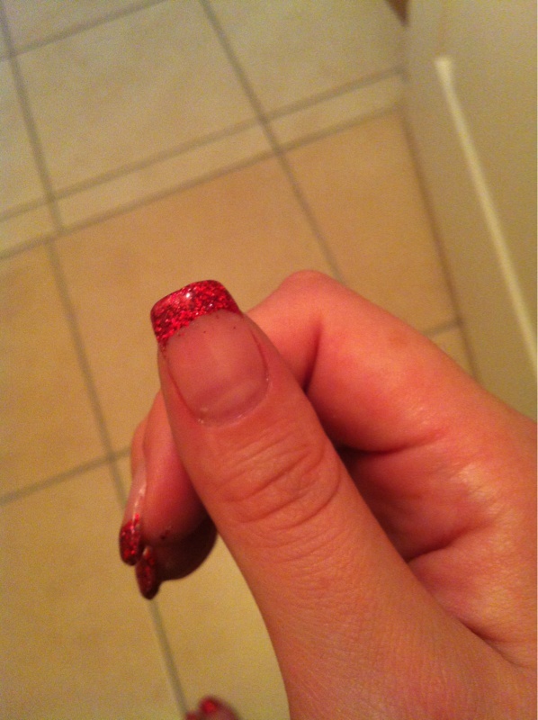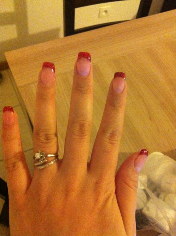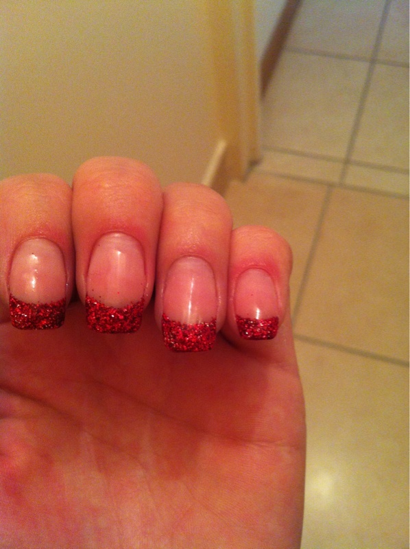 C'est joli ce rouge pailletté ! Par contre ta french manque un peu de sourire et elle n'est pas très nette surtout sur le majeur ! Bizbiz.