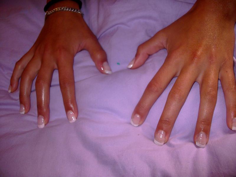 il y a des papates, manque de matière, pas de bombé et ta french n'est pas régulière, il y a aussi des bosses partout si je vois bien... lime tes // fait ton bombé et lime le s'il y a des bosses pour lui donner la forme avant de faire ta finition...