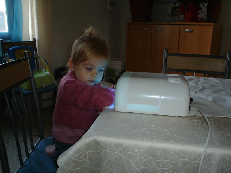 . Elle me fait trop trop rire ! Et elle a compri comment on allumé la lampe, la chipie ! J'ai pas eu le temps de prendre la photo où elle se met la capsule lol. Meme Papa y a le droit