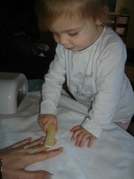 Je vous présente Maëlyss, 20 mois et déjà passionnée par la pose d'ongle