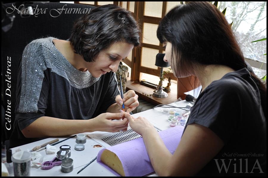 Après une matinée de théorie durant laquelle j'ai eu l'impression que tout ce qu'on m'avait appris jusque là était un peu "light" Natalya m'a montré comment faire et comment utiliser les gels Willa. Et j'ai été impressionnée. J'avais beau avoir vu les vidéo et suivi les pas à pas à la maison rien ne vaut l'explication en direct. De plus j'avais besoin d'idée et d'explication pour les décos de french et je vous jure que Natalya n'est pas en manque d'idées, d'astuce et de conseils.