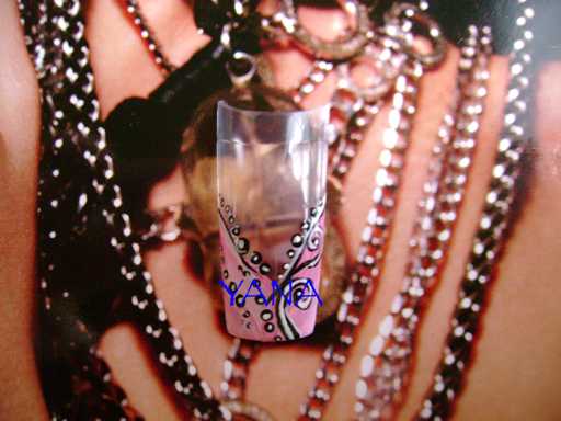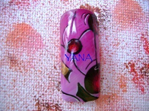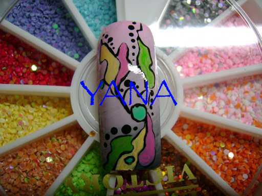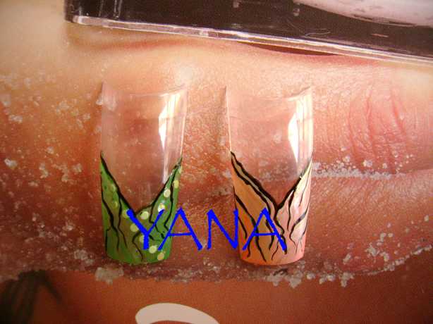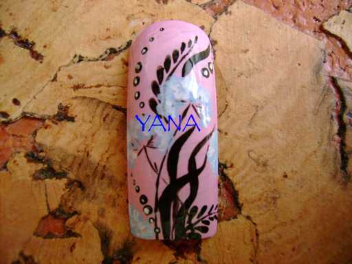 Les ongles naturels ont verni le dessin est accompli par la peinture actylique