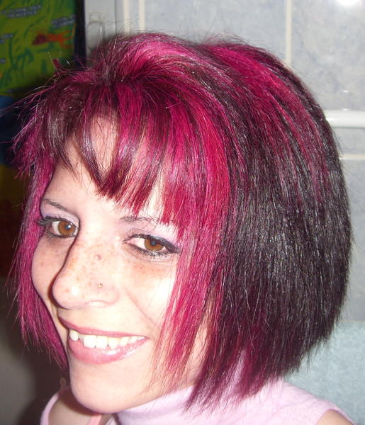 oui violet et noir juste que sa fasse plus long devant lol merci du complimentoui t'es mieux comme ça?T'as mis des extensions violet?