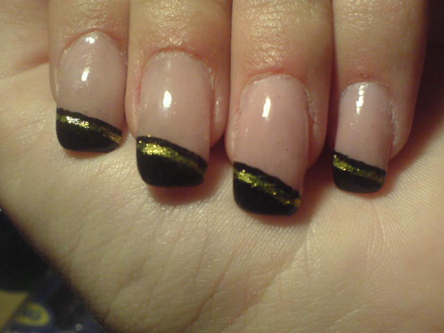 c'est une bonne idée de deco mais j'aurais fait le biaids plus haut donc plus grande french noir et le trait plus net.attetntion de ne pas touché les cuticules sinon risque de decollement continue c'est tres jolie